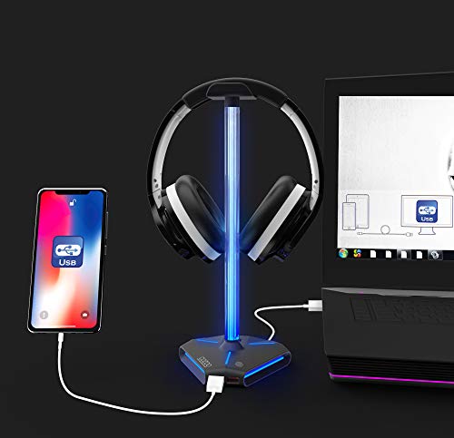 cozoo RGB Headphone Stand with 2 USB2.0 Extension Charging Port Extender Cord,Headset Stand Holder for Gamer Desktop…
