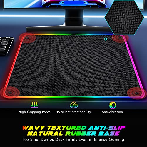 【Smooth, Waterproof & Hard Low-Friction Micro Texture Surface for Moving Fast,Pinpoint Accurately & Easy to Clean】 RGB mouse pad features smooth, hard micro texture surface that provides just the right amount of friction to accurately track pixels and calibrate all mouse sensors for smooth gaming;Such surface is suitable for fast and controllable game styles such as FPS and Over watch. It also has excellent tracking for all types of wired, wireless,optical and mechanical mice.