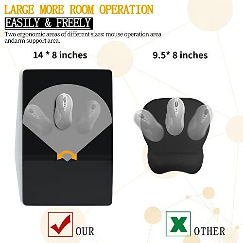 Large Size & More Room for Mouse Operation: Larger than normal mouse pad, 14”L x 8”W. And we ergonomically divide it into two areas of different sizes: mouse operation area and arm support area, so that you can move your mouse around more easily and freely. 【Tips: Please check the size of this mouse pad and your desktop before purchasing. Not for small office desks.】