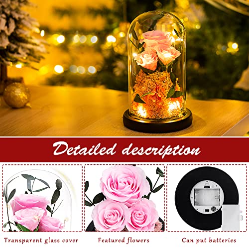 🌹Colorful Rose LED Lights:The Rose in glass dome is wrapped around colorful LED strip lights, which light up the inside dome and brighten up the surroundings as well. The galaxy rose powered by 3 AAA power (not included) and the switch is under the wooden base to make it safer, durable and heat-resistant.