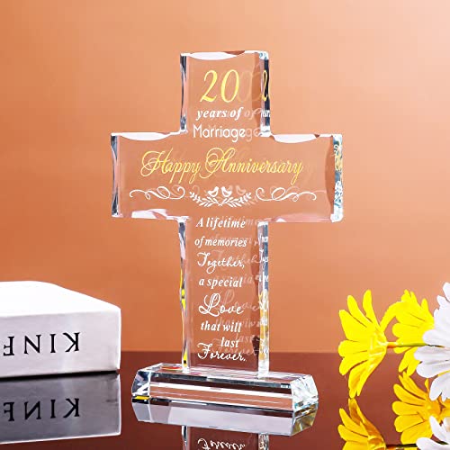 YWHL 20th Anniversary Religious Gifts for Couple, Laser Engraved K9 Glass Standing Cross Keepsake for Him, 20 Years…