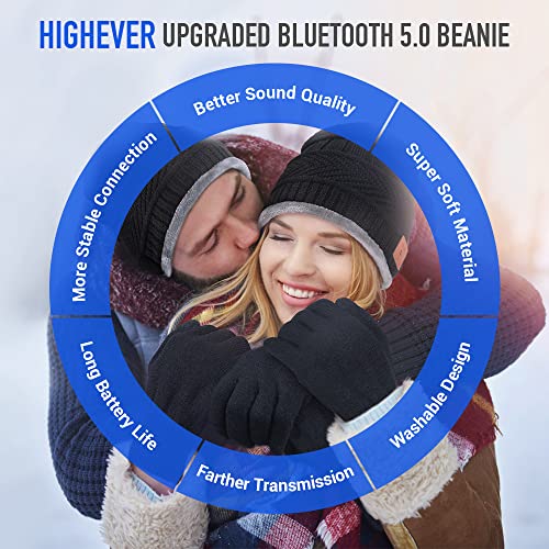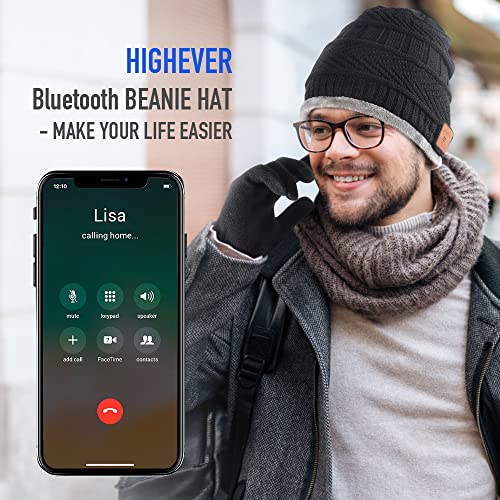 HIGHEVER Bluetooth Beanie Hat Stocking Stuffers for Men Women V5.0 Wireless Musical Bluetooth Cap Beanie with Speaker…