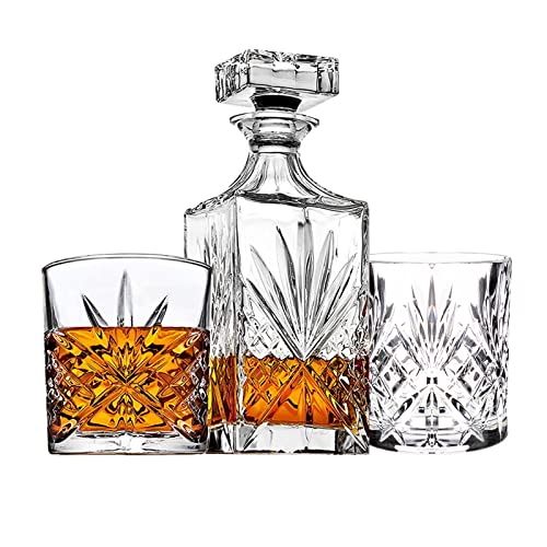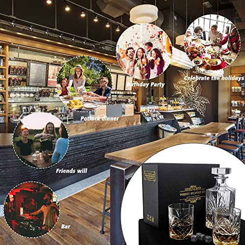 【ADVANCED GLASS AND ELEGANT DESIGN】More pure and premium glass than the competition ensures the elegant design of the whisky bottle.texture and bright refraction will shine beautifully in the light for years to come. Thick sides and a sturdy base keep you from worrying about breakage. Whether a formal dinner party or a casual get-together, this innovative whiskey set will fit right in on any table, with any liquor.