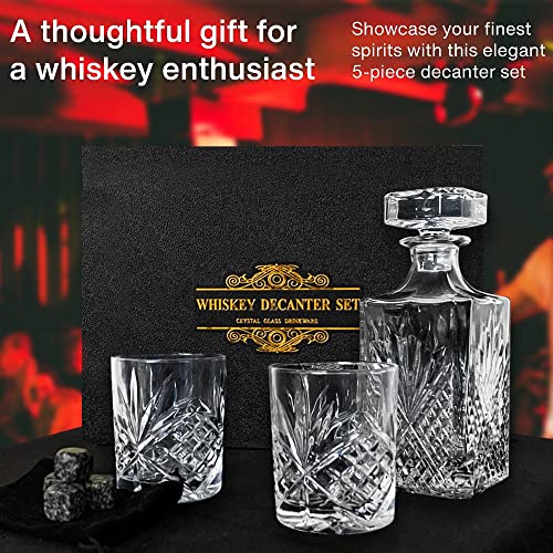 CHRHZN Whiskey Decanter Set, Italian Crafted,With 2 Whiskey Glasses, valentines day gifts for Man With Advanced leather…