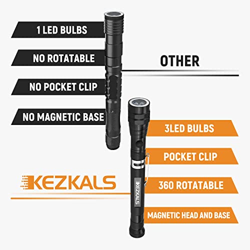 💟【Upgraded Design】Made of military-grade aluminum alloy, which is weatherproof and shockproof. Great values for you as it is powered by 4 LR44 batteries and 4 free spare batteries for your needs. KEZKALS provides satisfaction guarantee and 24 hours customer service.