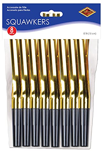 Beistle 8-Pack Squawkers, 6-Inch, Black and Gold