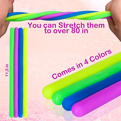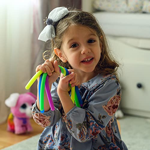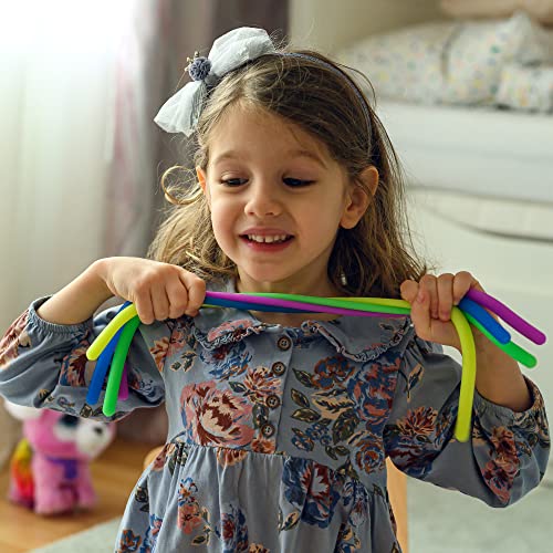 😃 ULTRA FUN FIDGET TOY FOR KIDS – bright colored monkey noodle strings PLEASANT to STRETCH & FIDGET with; the kids will bring them anywhere, from the couch while watching TV to the car; STRESS RELIEF FOR ADULTS – no joke, give an adult a fidget string and transform him into a child who won’t put his toy down and keep running his fingers along the fantastic texture; NOT STICKY – can be rinsed with soap and water and do not catch dirt easily;