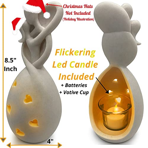 TOP QUALITY & MEANINGFUL DESIGN: Our infinity love candle holder has designed with a lot of thinking, presenting a couple hugging and creating an Infinity shape of love, while the flickering candle shine out of the small hearts on the lady’s dress, creating warmth relaxed and romantic atmosphere, that everyone will love.