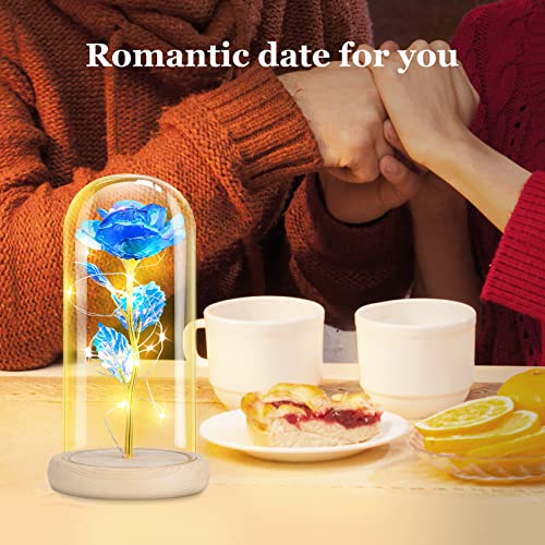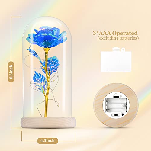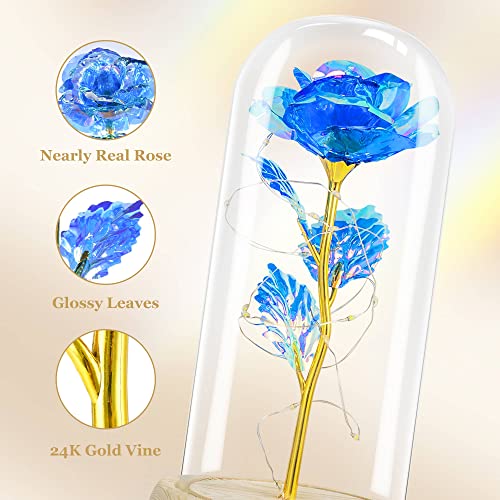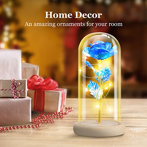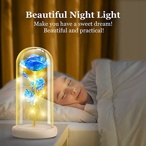 Blue Rose Gifts for Her, Gifts for Mom from Daughter, Forever Light Up Rose Flowers Gift Roses in Glass Dome, Mothers…