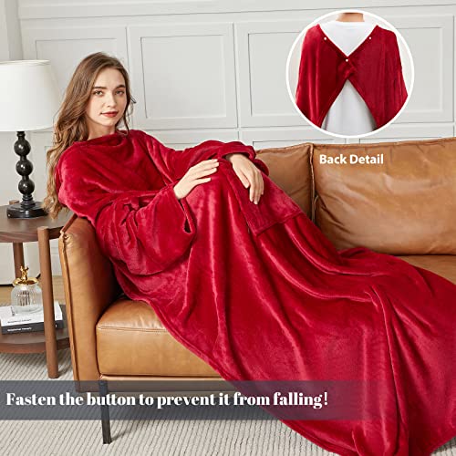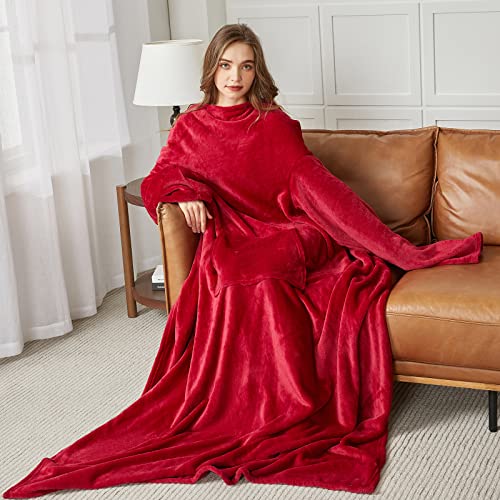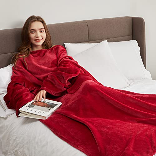 HOSUKKO Fleece Wearable Blanket with Sleeves Pocket and Hat, Extra Long Warm Soft and Cozy Functional Blankets, Gifts…
