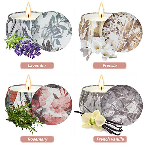 [Aromatherapy Candle Sets for Women Christmas Gifts]: This 4 packs scented candles gift set includes Gardenia, Lavender, Jasmine, and French Vanilla four scents. Thanks to natural essential oils extracted from plants, scented candles calm the nerves, relieve fatigue, and promote sleep. This candle pack will be very suitable for people to relax after a busy day.